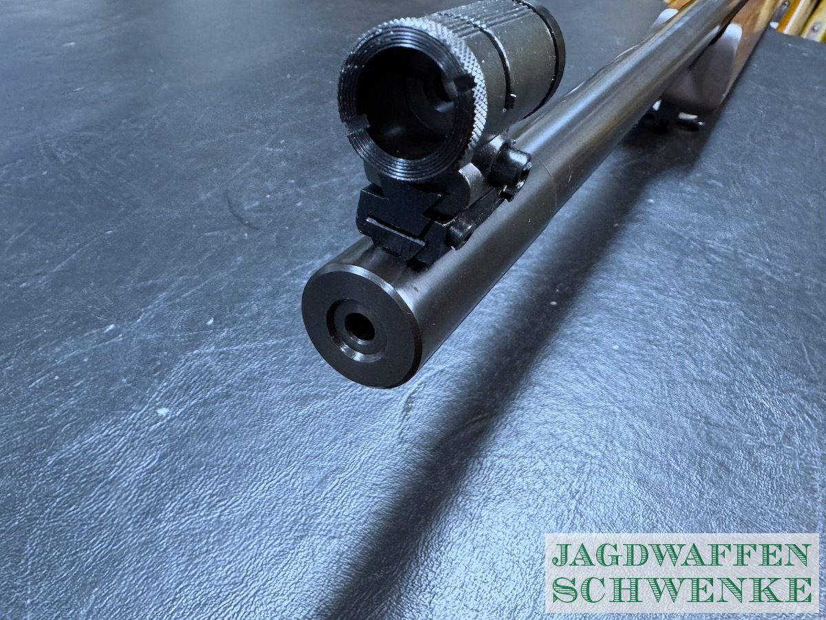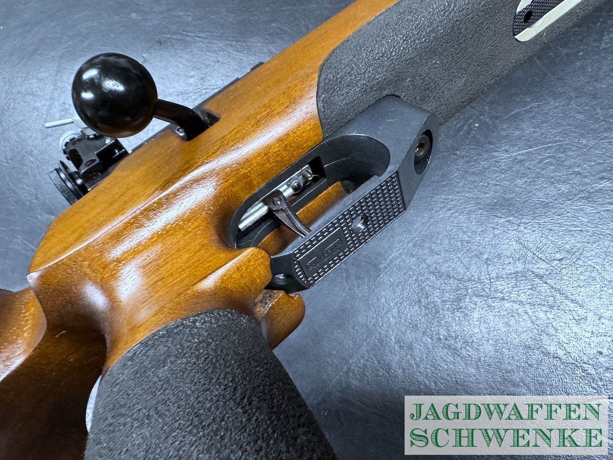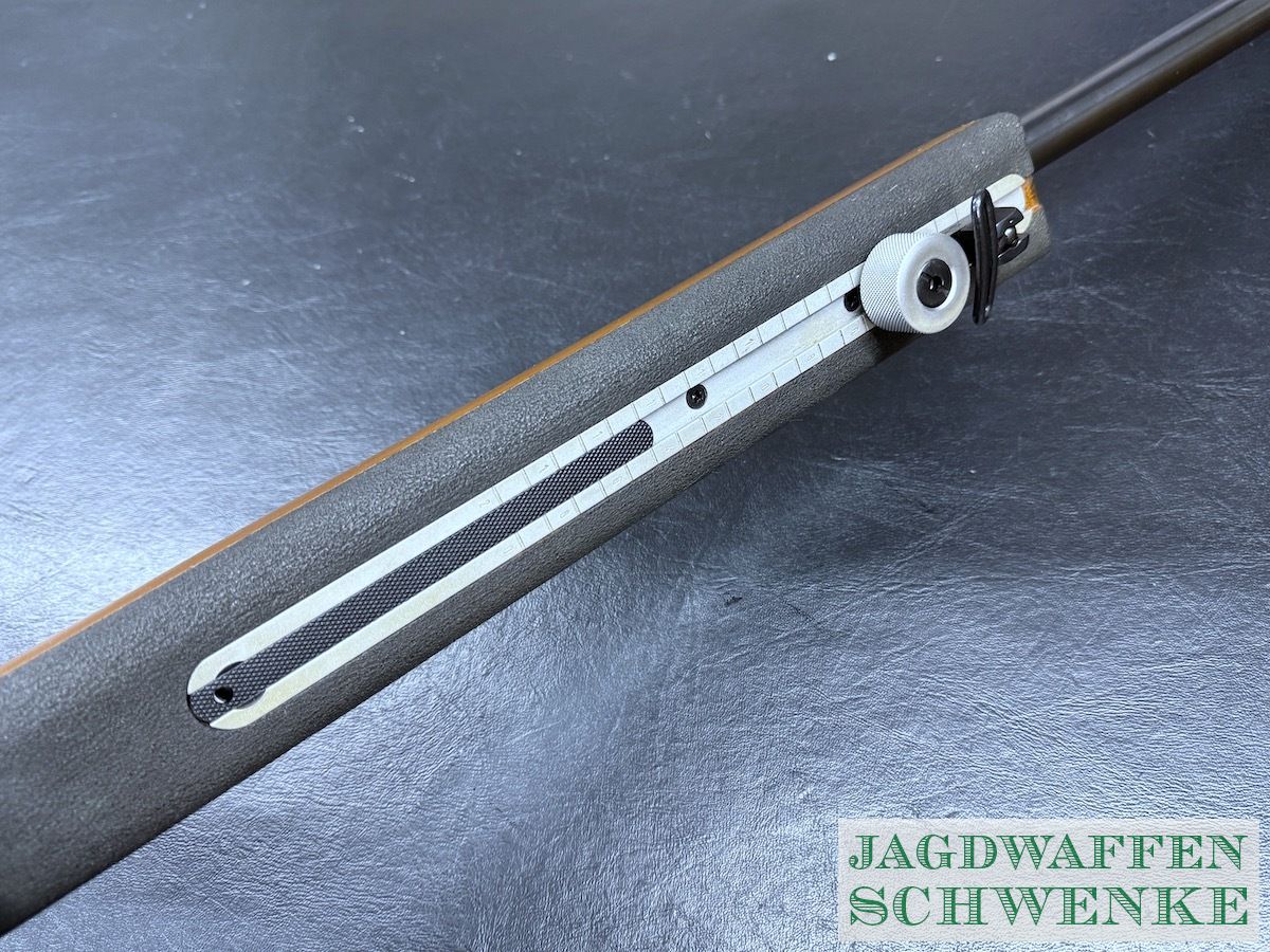 Lauflänge: 690 mm, Einzellader, extrastarker Lauf mit 23,5 mm, verstellbarer Druckpunktabzug, seitliche Schiebesicherung, Kammerstengel mit Kugelgriff aus schwarzem Kunststoff, , der Schaft aus Nussholz mit Pistolengriff, verstellbarer Handballenauflage, Lochschaft, verstellbarer gefederter Backe und in mehreren Ebenen,verstellbarer Schaftkappe,